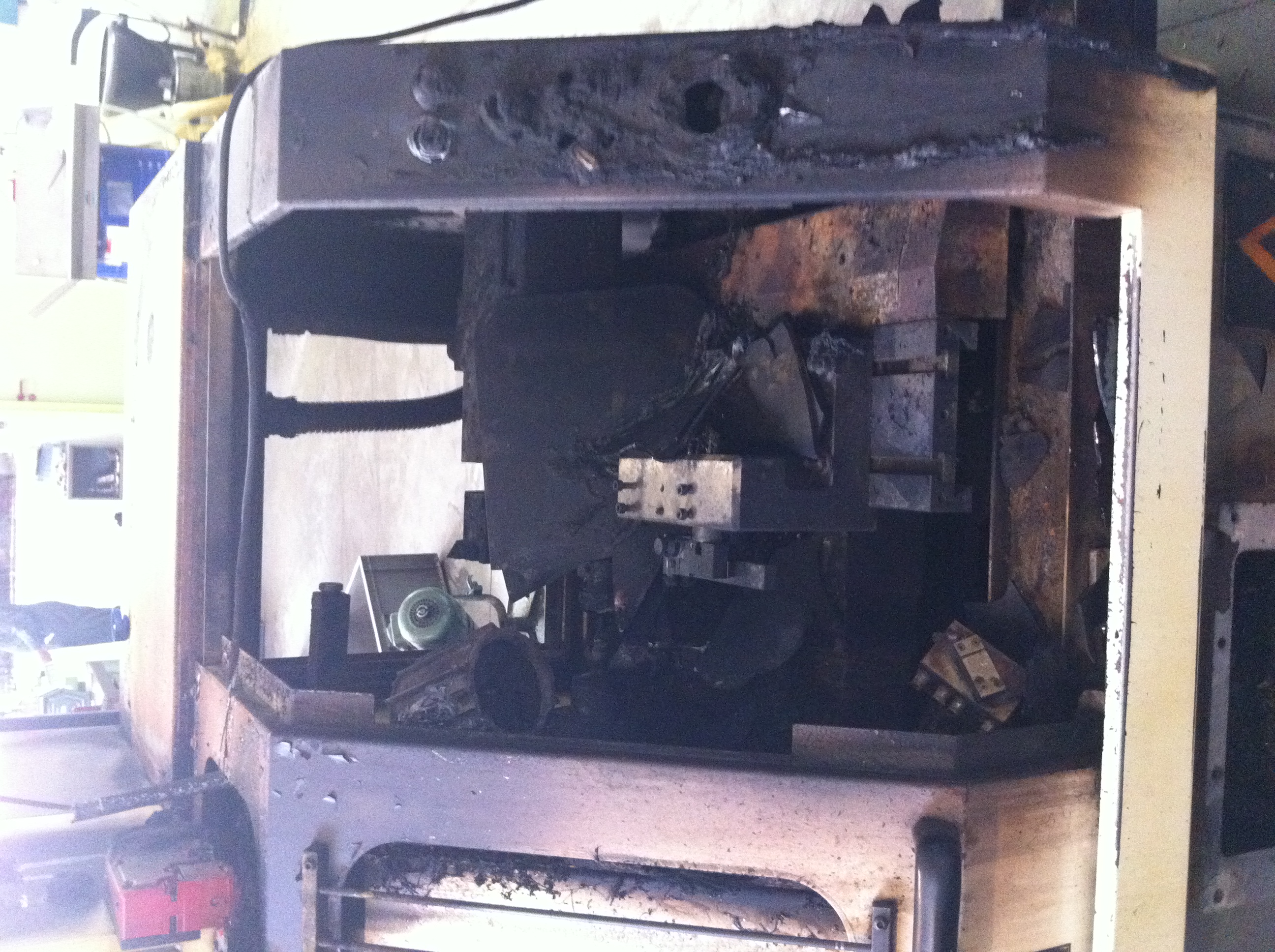 Il ne reste plus rien de la machine calcinée (mais plus le projecteur : l’écran demeurera noir…). Pas si vieux le tour (ni d’Coty – ni de cote-t-on) avec son carrousel enchanteur… est parti en fumées corrosives se déposer sur nombre d’outils, pièces et machines voisines entraînant des dommages supplémentaires bien plus long à déterminer et à analyser… A nous de traiter sans détour !